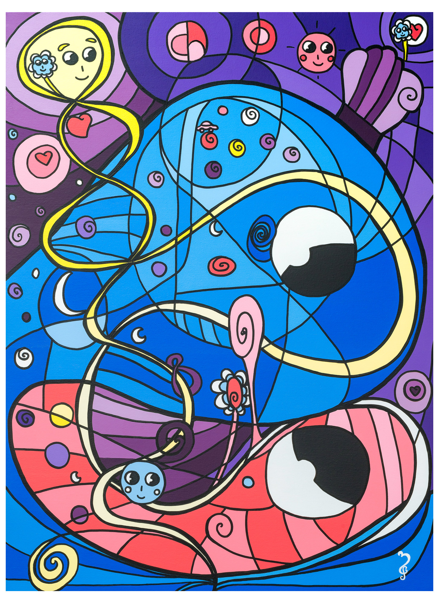 J’aime voir que cette œuvre vient raconter une multitude d’histoires, d’interprétations, sur l’ADN, le cosmos, la mère (mer), la vie. Cette œuvre offre une richesse et une profondeur inattendue.